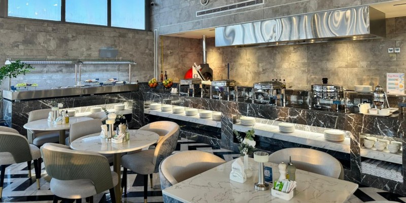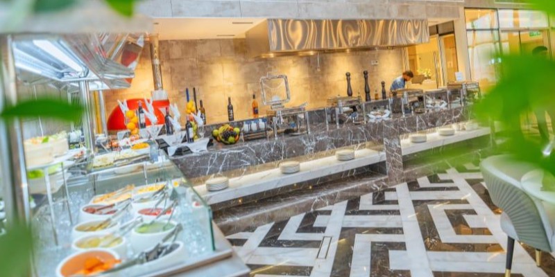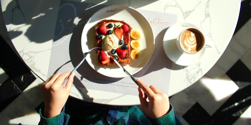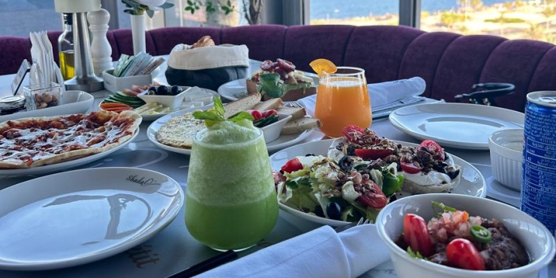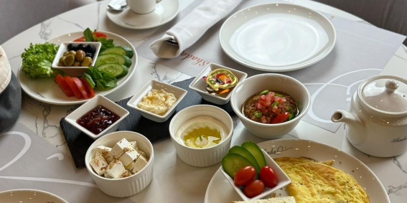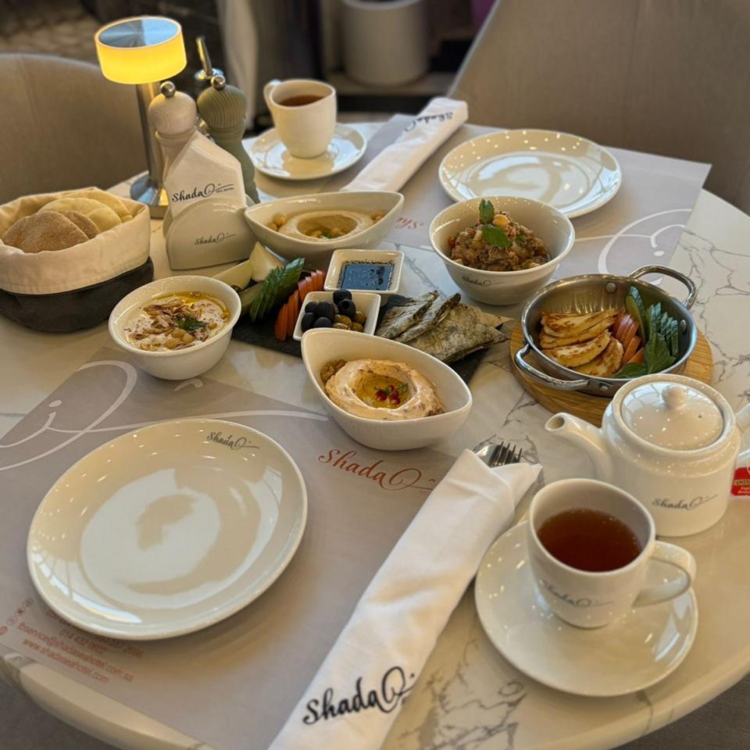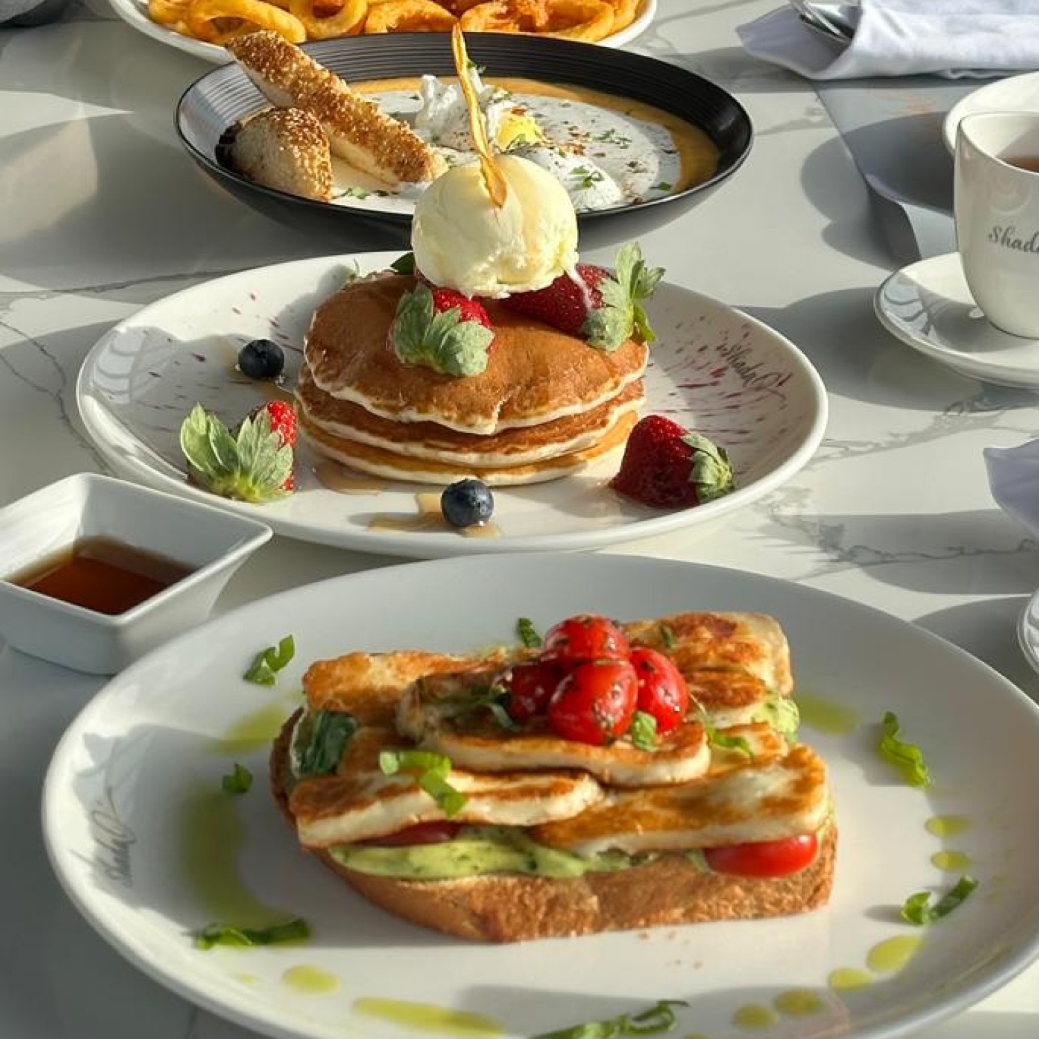 (895 سعرة حرارية)فول , اختياراتكم من البيض( اومليت , بيض عيون , بيض مخفوق ) , جبن فيتا , لبنة , تشكيلة خضراوات , قشطة طازجة ، مربى , عسل , سلة مخبوزات, شاي